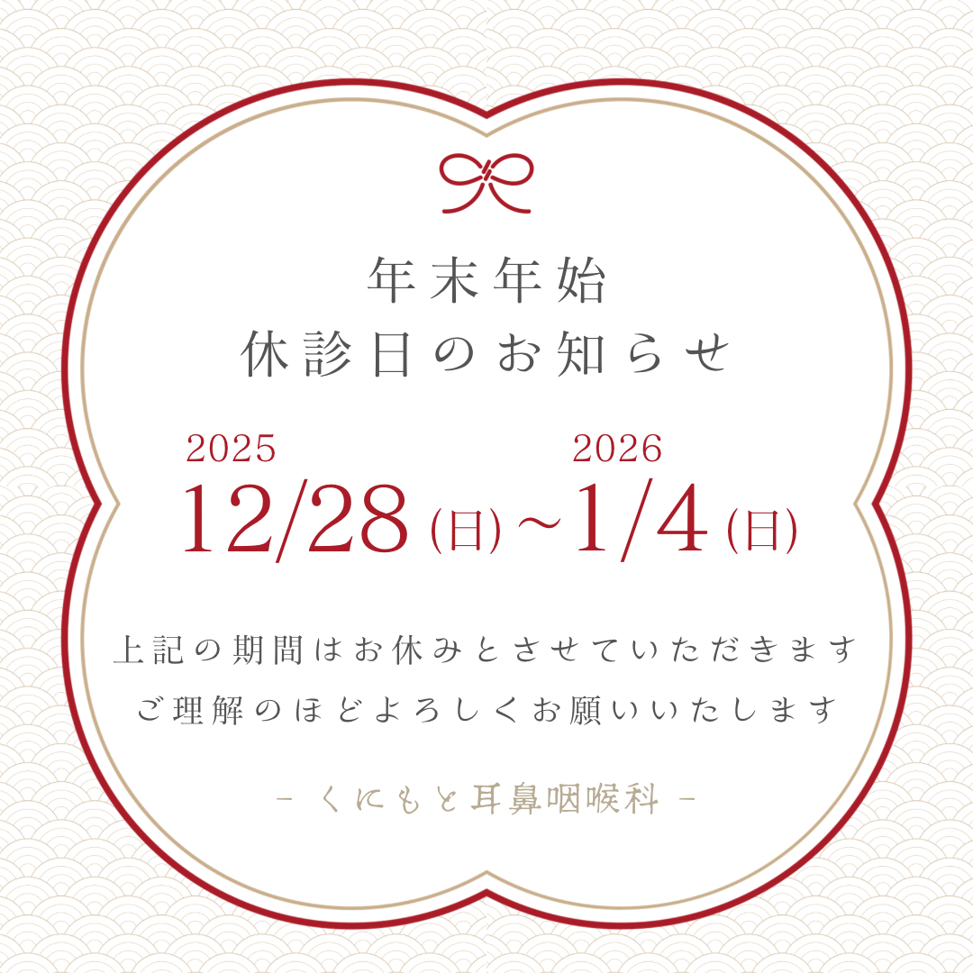 2025年12月28日から2026年1月4日は年末年始の休診となります